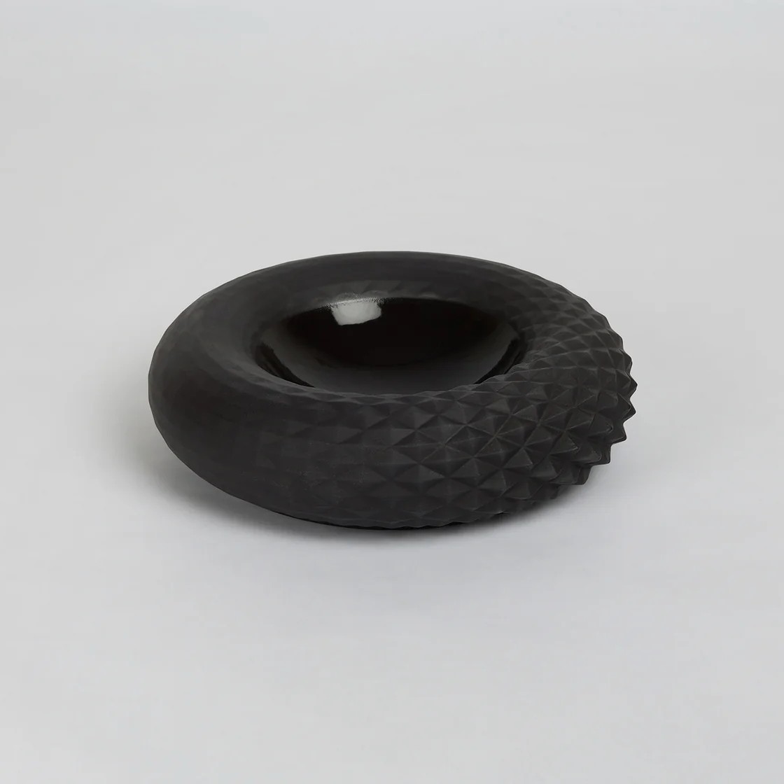 kr. 465,00 Inkl. momsPOLYGON er en flad tallerken inspireret af geometriske former, der udfolder sig fra kanterne for at skabe et centralt rum, der fremhæver og giver kokkens kreation en særlig plads. yder-ø:30cm, inder-ø:10cm, h:2cm Vægt: 1150g Materiale: keramik Farve: sort mat yderkant – sort glaseret inderskål Tåler opvaskemaskine, mikrobølgeovn og ovn. Designet…