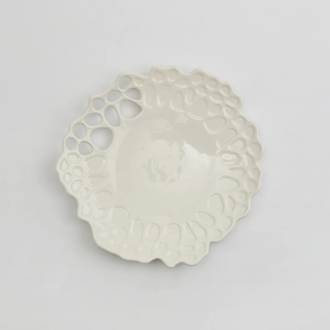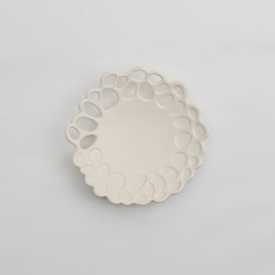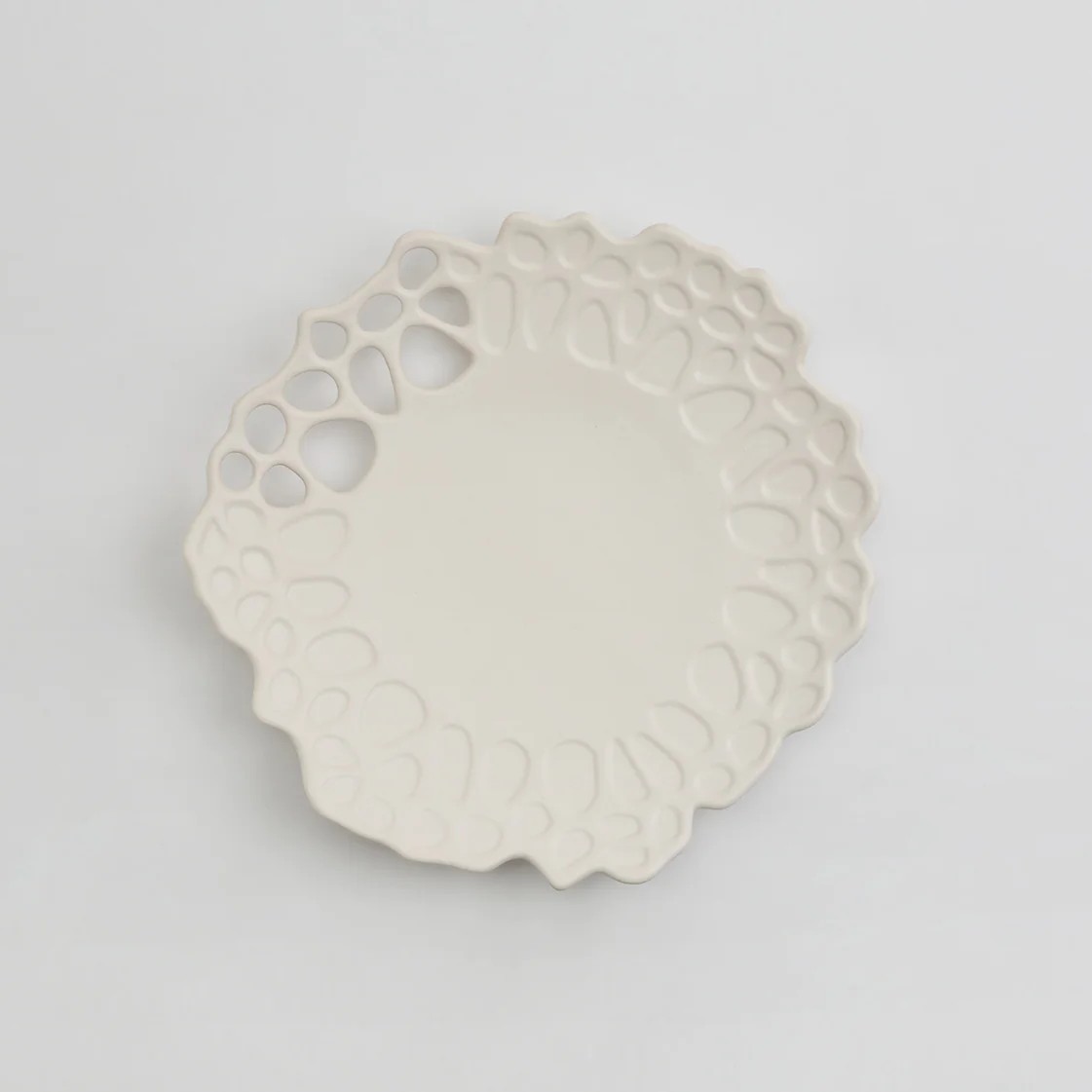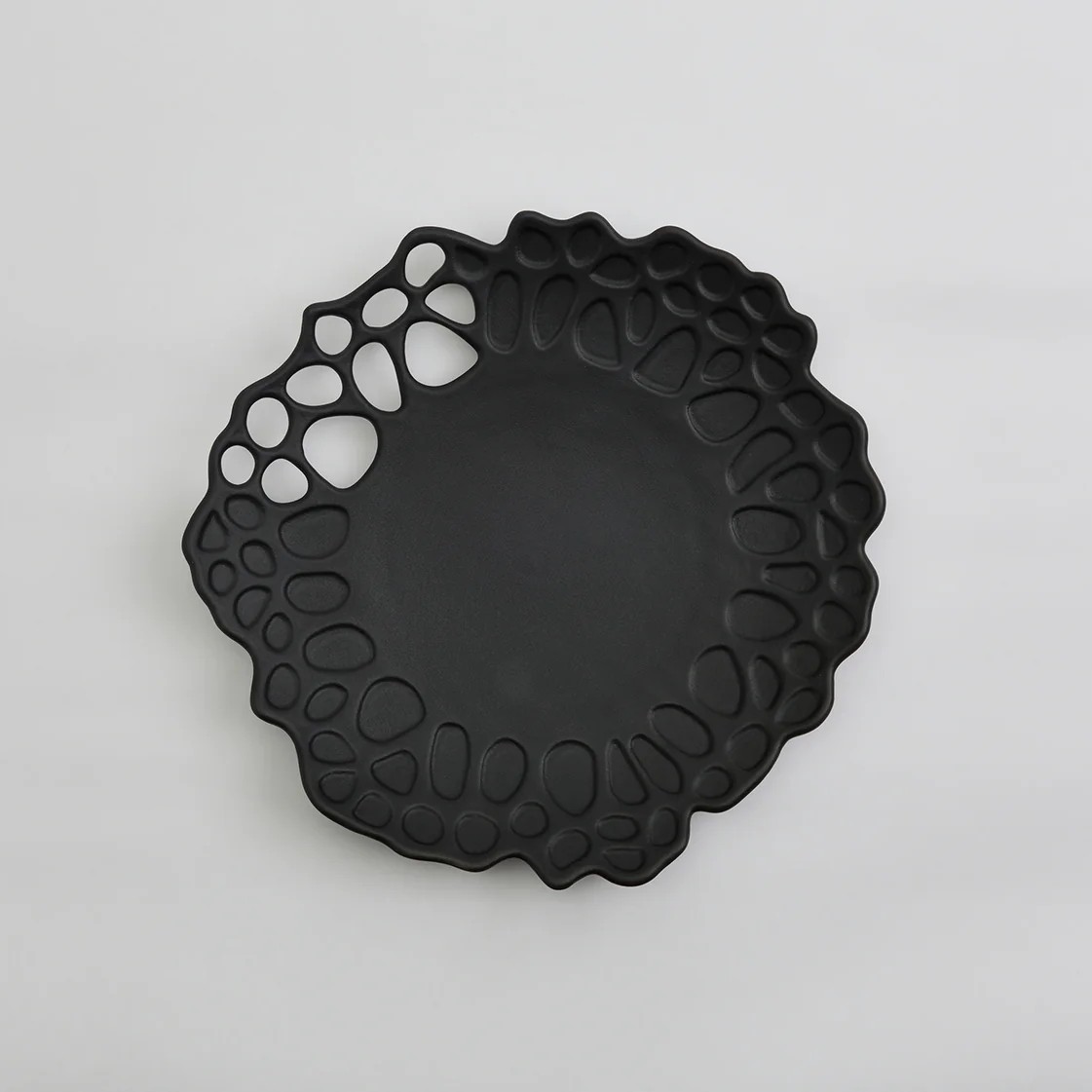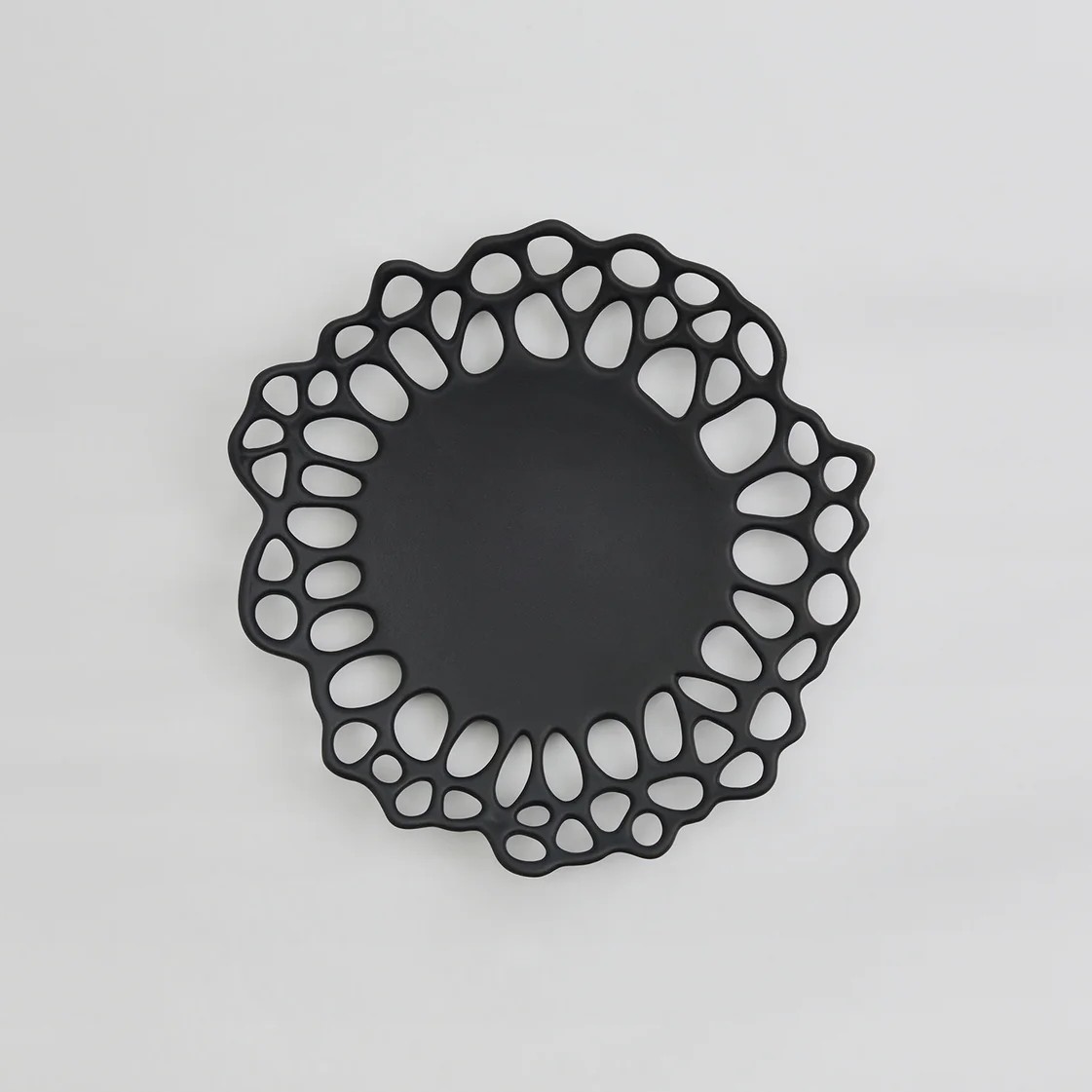 kr. 700,00 Inkl. momsETHEREAL-tallerkenen er et mesterværk af design med en række organiske udskæringer, der yndefuldt indrammer det centrale belægningsområde. Det indviklede netværk af hulrum giver møblet en let, næsten luftig kvalitet, der tillader baggrunden at titter frem og forbedrer den visuelle appel af den serverede ret. Denne tallerken er fremstillet til at…