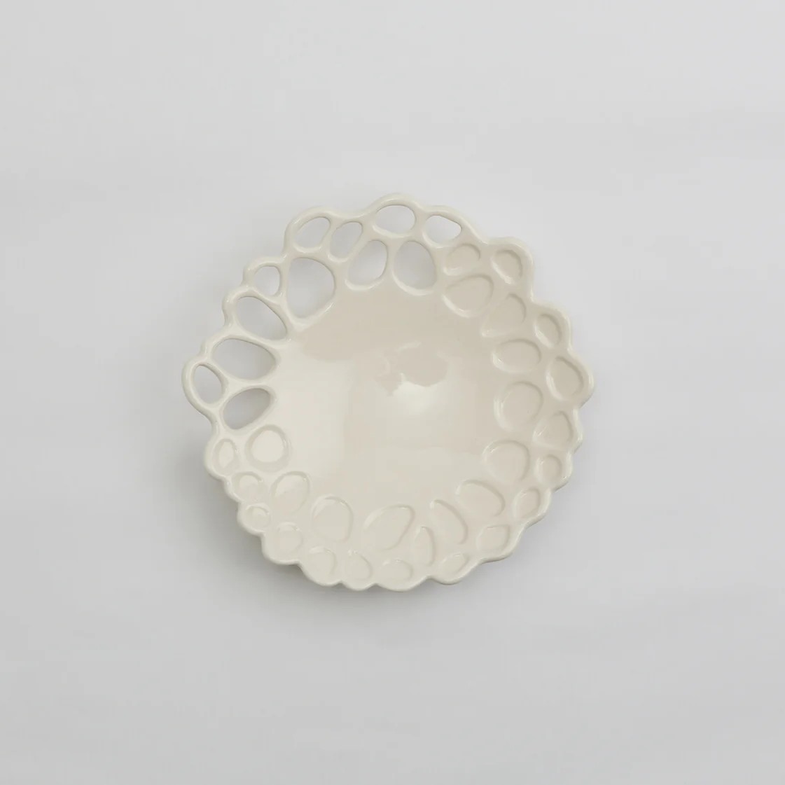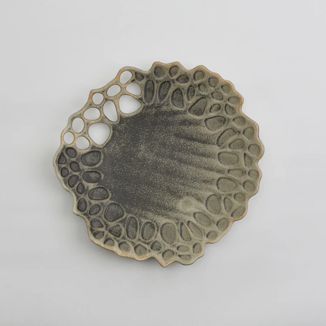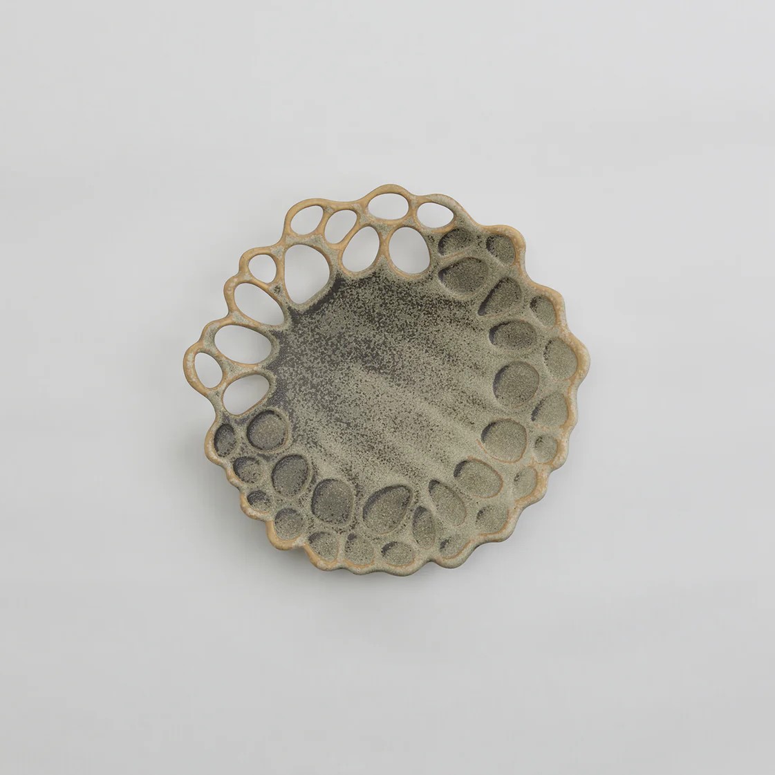 kr. 515,00 Inkl. momsORGANIC er en tallerken, der smukt afspejler naturens ujævnheder og tiltræknings- kraft. Dens design har åbne huller, der minder om cellestrukturer eller planteårer. Dette stykke fungerer ikke kun som en funktionel tallerken, men også som et slående kunstværk, der komplementerer enhver kulinarisk kreation med sin naturlige elegance. Mål: ø:23cm h:3cm…