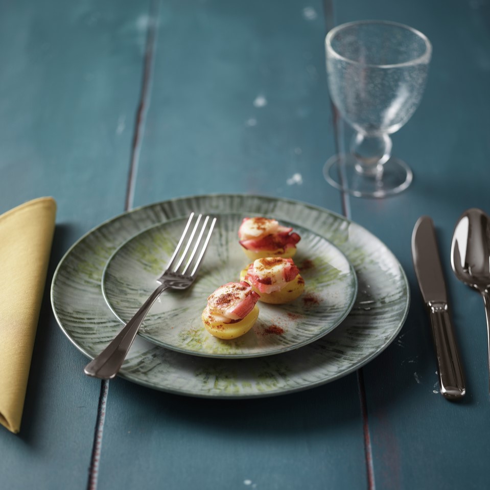 stor flad tallerken, perfekt til pizzaer eller som dækketallerken