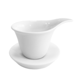 Sæt med kop med lille greb til kaffe, dressing eller lille sauce, også kaldet “The espresso lungo” samt underkop. Blank overflade indvendig med silkemat finish på ydersiden. Underkoppen med silkemat finish.