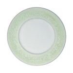 Stor flad tallerken med bred farvet kant og cremehvid midterbassin.