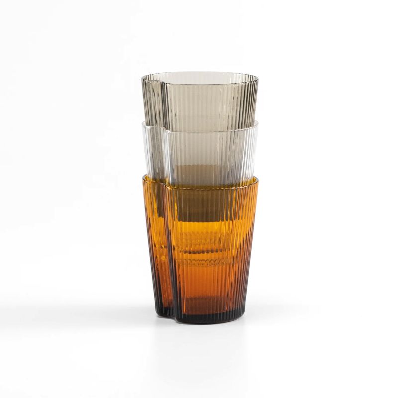“Handy” er stabelbar, så den er også velegnet til hverdagsbrug og til at optimere pladsen. Handys design, der er beregnet til at give et behageligt greb, er samtidig også meget elegant. Glasset fås i 6 forskellige farver.